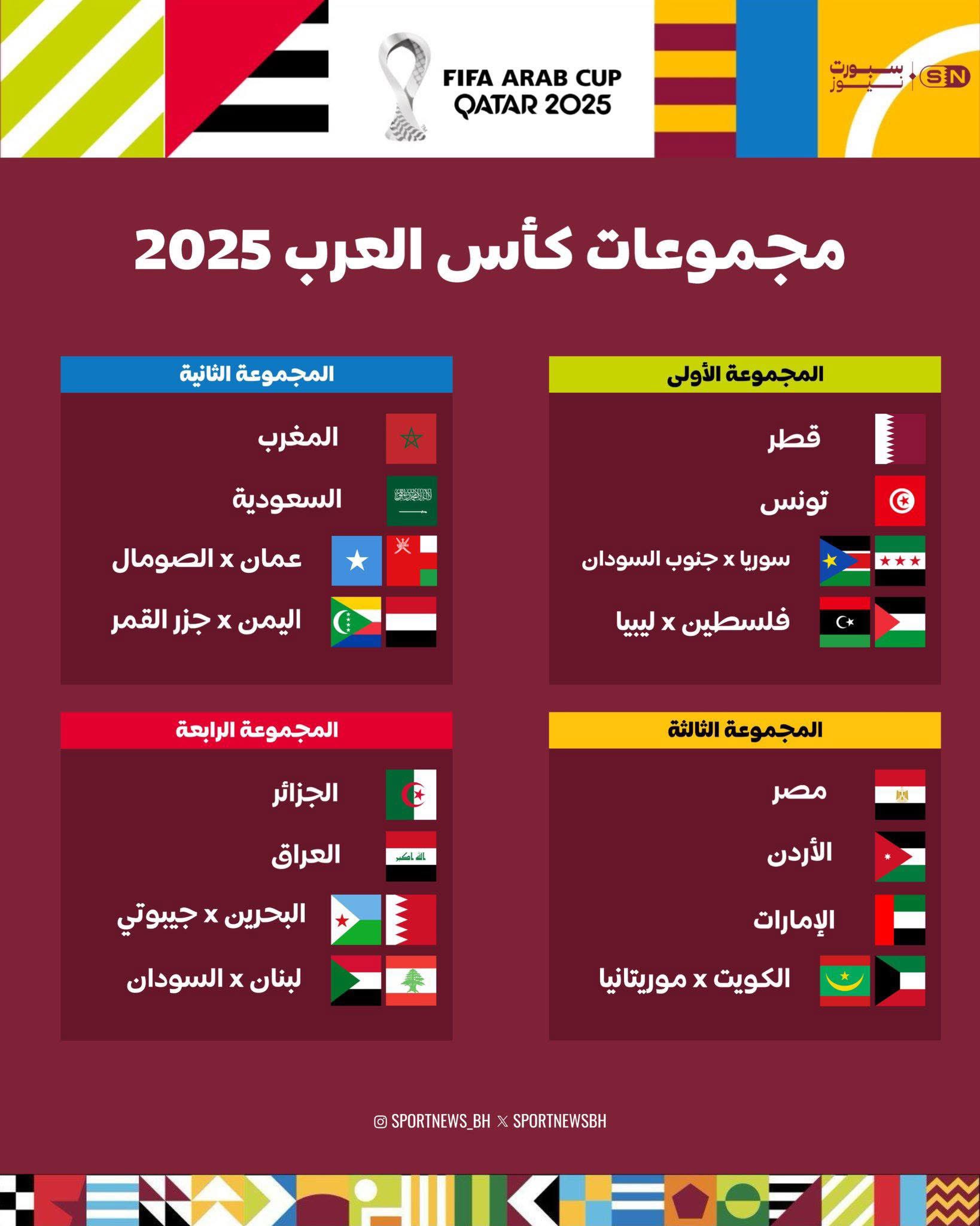 قرعة كأس العرب 2025 تضع الأخضر في المجموعة الثانية