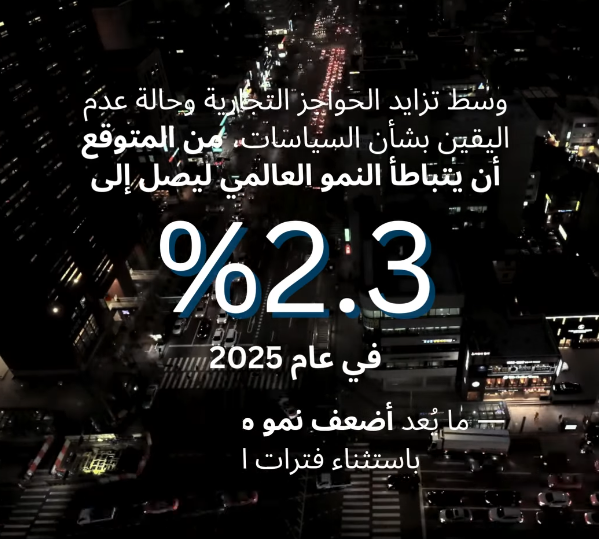 ورغم استبعاد حدوث ركود عالمي بنسبة أقل من (10%)، أشار البنك إلى أن النمو الاقتصادي في (2025) سيكون الأضعف خارج نطاق الركود منذ (2008)، مع توقع وتيرة نمو متوسطة تبلغ (2.5%) بحلول (2027).