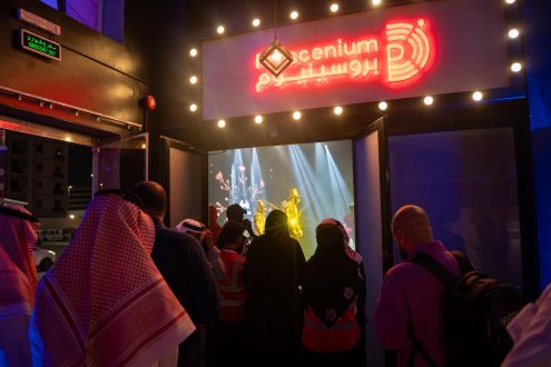 تخلل الحفل عرض مرئي يستعرض رحلة تأسيس المشروع، تلاه عرض أدائي يمزج بين ثقافة الهيب هوب العالمية والهوية السعودية، ثم ألقى الرئيس التنفيذي لـ”بروسينيوم” الأستاذ منصور عبدالرحمن صالح كلمة عبّر فيها عن تطلعاته لأن يكون المسرح منارة للإبداع ووجهة لكل فنان وطموح.
