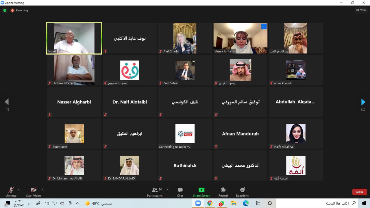 وتحدث الخبير في الاعلام والاتصال الأستاذ فؤاد بوسلامة، قائلا: أتقدم بجزيل الشكر لكل أعضاء مجلس إدارة جمعية “إعلاميون” هذا الصرح الإعلامي العربي على هذه المبادرة المميزة وأن نستمع في هذه الندوة عبر الاتصال المرئي، ولنتناول قيمة وعراقة الروابط بين القيادتين والشعبين الشقيقين التونسي والسعودي ولا يسعني إلا أن نرفع أسمى عبارات الشكر والتقدير والاعتراف بالجميل لخادم الحرمين الشريفين الملك سلمان بن عبد العزيز ولسمو ولي العهد محمد بن سلمان، ولكل الشعب السعودي الشقيق على وقوفهم الدائم إلى جانب الشعب التونسي الذي يمر بأزمة صحية خانقة تتسبب بعدد من الضحايا بشكل يومي.