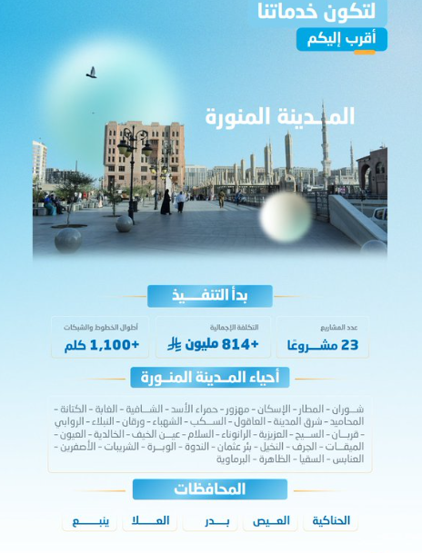 وبيّنت الشركة أن هذه الحزمة الجديدة من المشاريع تأتي استكمالًا لما أعلنته في شهر مايو 2024م، عن شروعها في تنفيذ (9) مشاريع في المدينة المنورة بنحو (500) مليون ريال.