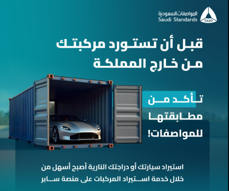 دعت الهيئة السعودية للمواصفات والمقاييس والجودة المستوردين الأفراد للمركبات الجديدة والمستعملة إلى التحقق من مطابقة المركبة لمتطلبات المواصفات السعودية قبل شحنها إلى المملكة، وذلك عبر خدمة استيراد المركبات، وذلك في إطار حرص الهيئة على تسهيل حركة استيراد المركبات.