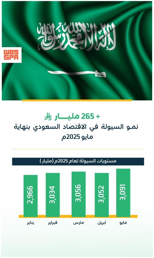 أكثر من (265) مليار ريال نموّ السيولة المحلية بنهاية مايو 2025م