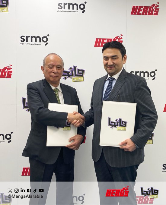 أعلنت مانجا العربية إحدى شركات المجموعة السعودية للأبحاث والإعلام (SRMG)، في إطار إستراتيجيتها الرامية إلى تقديم محتوى يواكب تطلعات جمهور القصص المصورة في العالم العربي، عن توقيعها اتفاقية تعاون مع شركة هيروز اليابانية، إحدى الشركات الرائدة في مجال نشر وإنتاج فن المانجا، وبموجبها ستقوم مانجا العربية بترخيص وترجمة ونشر عدد من أبرز أعمال المانجا اليابانية العالمية باللغة العربية.