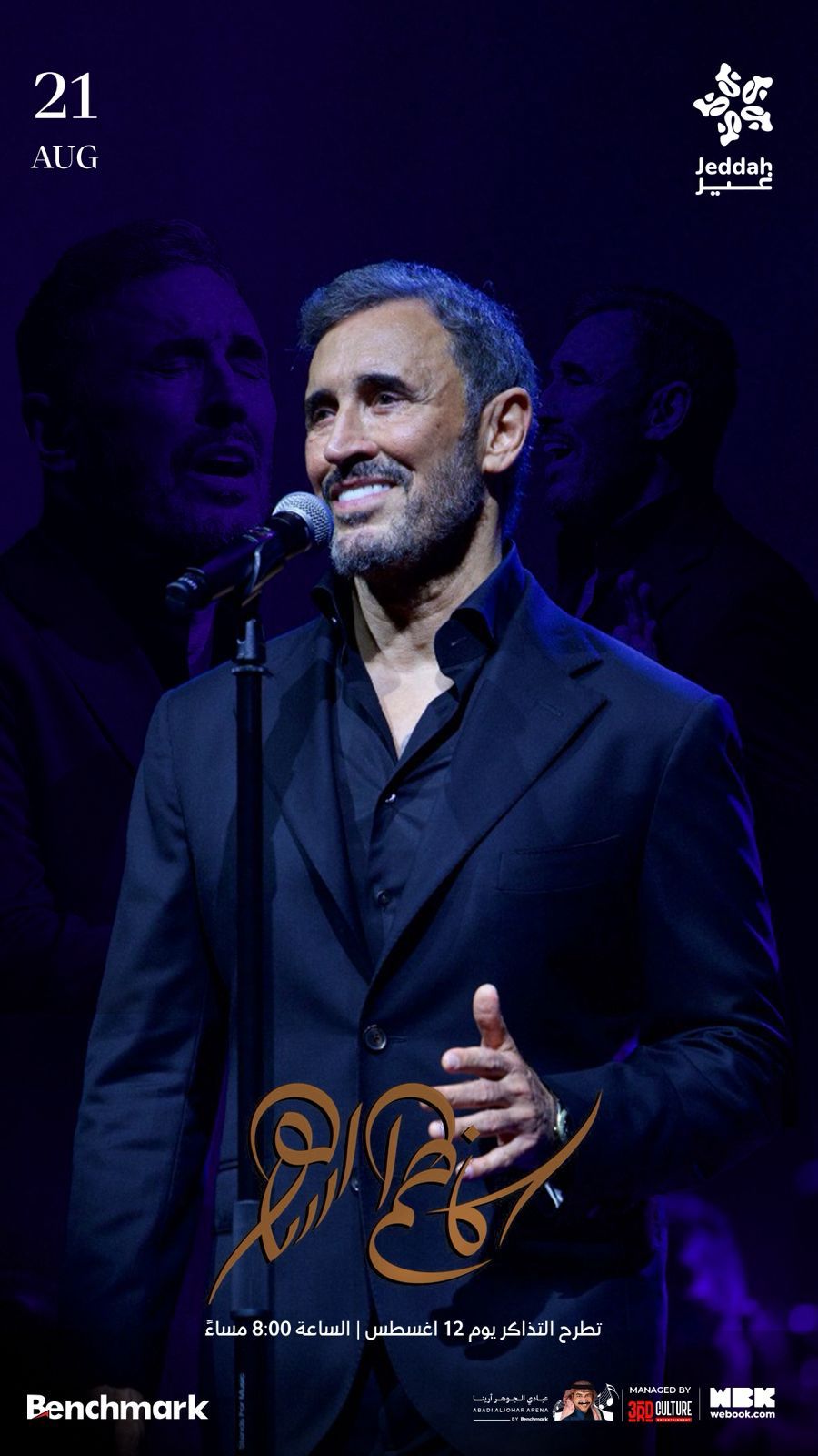 في أمسية طال انتظارها، يطل قيصر الغناء العربي كاظم الساهر على جمهوره في جدة يوم الخميس 21 أغسطس 2025، على مسرح عبادي الجوهر ارينا، ضمن برنامج حفلات موسم جدة، بتنظيم من شركة بنش مارك.