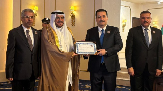 وسلم رئيس مجلس الوزراء العراقي السيد محمد شياع السوداني، الجائزة، لمدير عام الدفاع المدني اللواء الدكتور حمود بن سليمان الفرج.