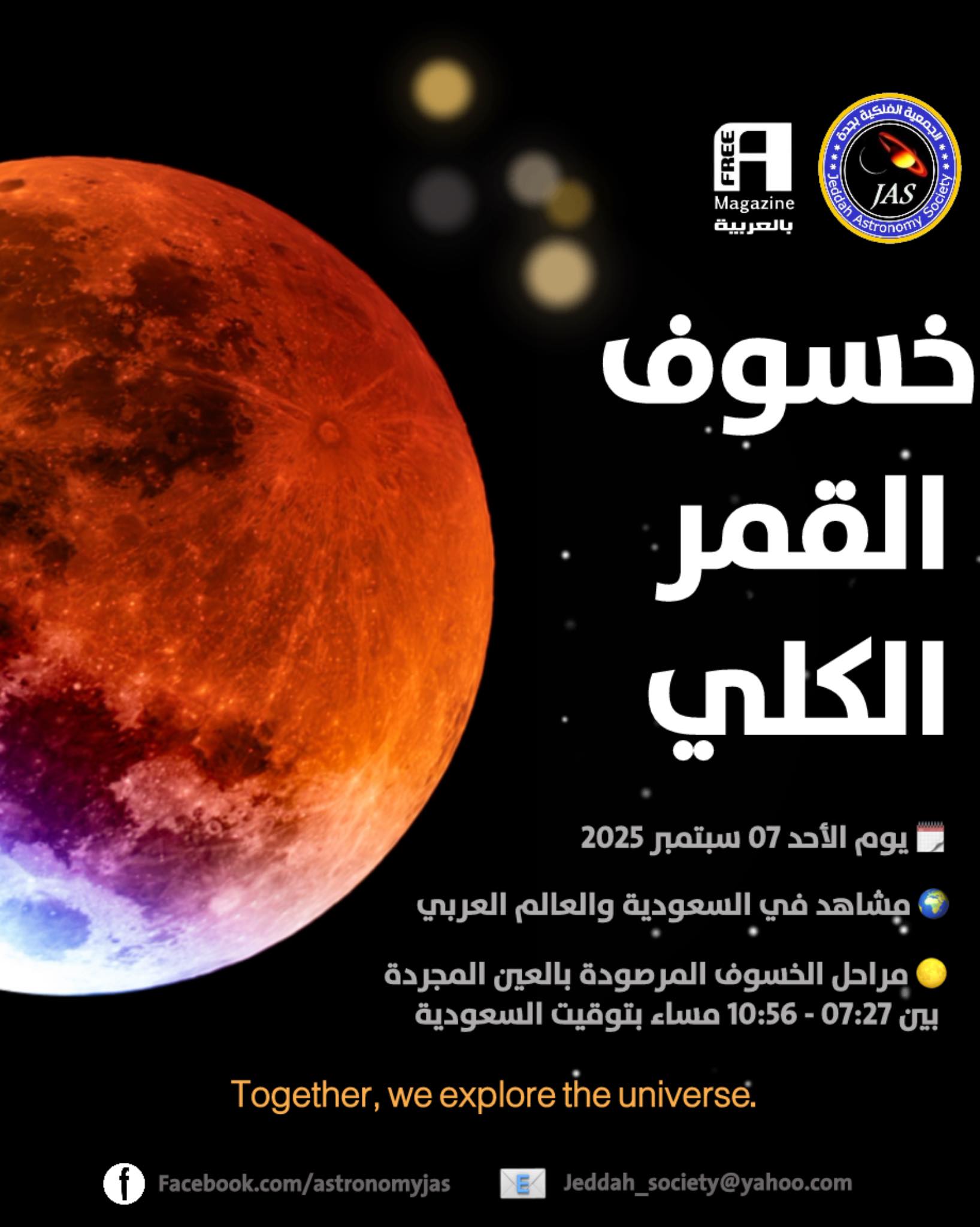 «فلكية جدة»: خسوف كلي للقمر مُشاهدٌ في المملكة غدا