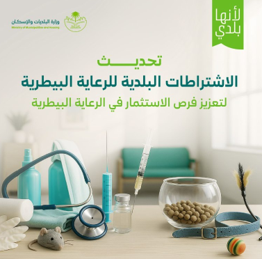 حدّثت وزارة البلديات والإسكان الاشتراطات التنظيمية الخاصة بقطاع الرعاية البيطرية، بهدف تحسين جودة الخدمات المقدمة في المنشآت البيطرية، وتعزيز الصحة العامة، وتحقيق التوازن بين متطلبات التشغيل والسلامة، إضافةً إلى تحفيز بيئة الاستثمار.