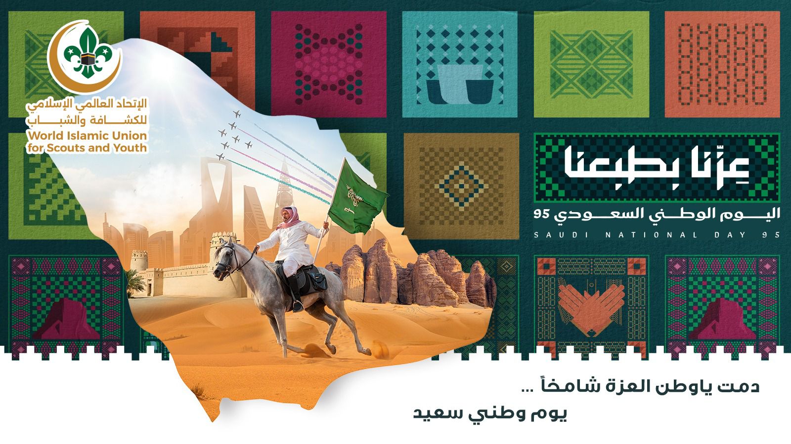 رفع الأمين العام للاتحاد العالمي الإسلامي للكشافة والشباب سعادة الدكتور زهير بن حسين غنيم إلى مقام خادم الحرمين الشريفين الملك سلمان بن عبد العزيز وإلى ولي عهده الأمين الأمير محمد بن سلمان – حفظهما الله ورعاهما- ، وإلى كافة الشعب السعودي الكريم أصدق التهاني والتبريكات بمناسبة اليوم الوطني السعودي95 .