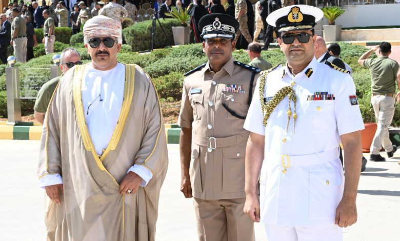 يرافقه سعادة الملحق العسكري العماني العقيد الركن بحري سالم بن مهنا بن سالم الشكيلي – الملحق العسكري العماني.