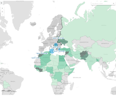 وأشارت البيانات إلى أكبر انخفاض في طرق غرب أفريقيا بنسبة (58%)، وغرب البلقان بنسبة (47%)، والحدود البرية الشرقية بنسبة (36%).
