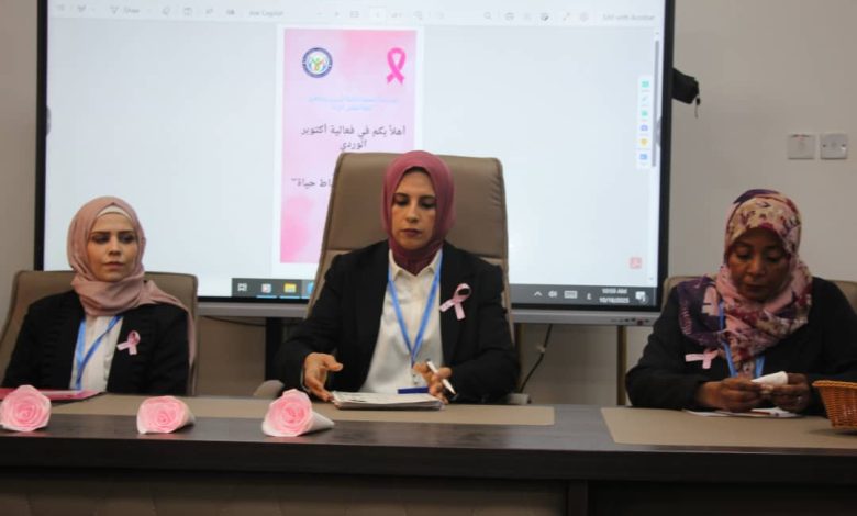 أقامت مؤسسة الخطوة الثابتة للتدريب والتأهيل تقيم فعالية أكتوبر الوردى بقاعة وكالة الأنباء الليبية تحت شعار “الحركة شفاء والنشاط حياة ” وبحضور العديد من السيدات تم خلال الجلسة الحديث عن المرض وكيفية تجنب الإصابة به والتعامل معه أثناء الإصابة، وعرض بعض من الحالات المصابه بالمرض ، وكيفية اتباع نظام غذائي سليم وطرق العلاج الوقاية