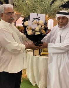 قُدمت له الدروع والزهور وارتسمت ابتسامة هادئة على وجهه يخفي خلفها مزيجًا من الفخر والحنين ، ثم قال بصوته المتهدّج: “الأفلاج ليست مكان عمل الأفلاج بيتي.”