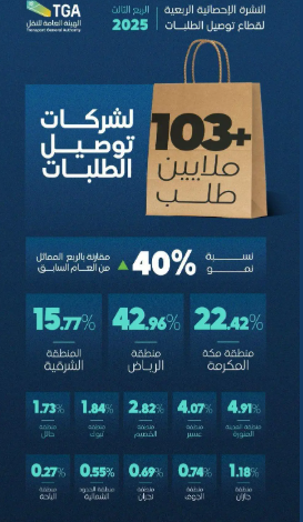 هيئة النقل: ارتفاع عمليات توصيل الطلبات إلى 40% خلال الربع الثالث من عام 2025