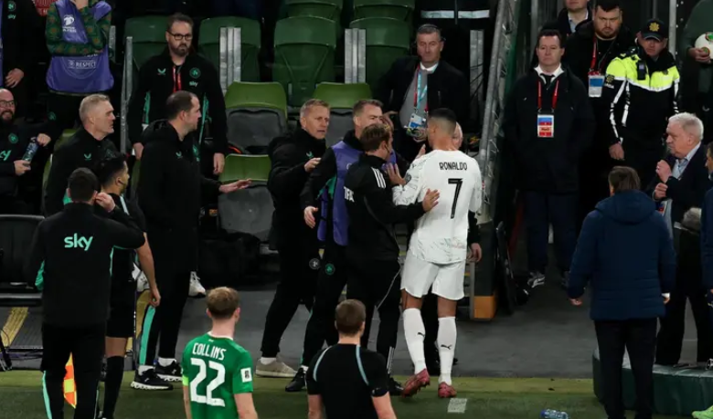 وتبادل رونالدو، الحائز على جائزة الكرة الذهبية لأفضل لاعب في العالم خمس مرات، بعض الكلمات مع هالغريمسون عقب طرده في الدقيقة 61 بعدما قام بضرب أحد لاعبي إيرلندا بمرفقه خلال الخسارة 0-2 في دبلن.