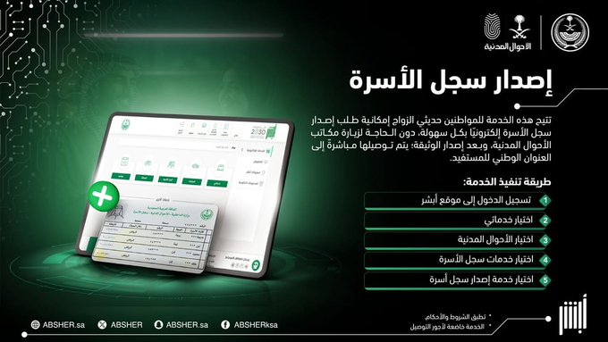 أبشر: 5 خطوات لإصدار سجل الأسرة إلكترونيًا