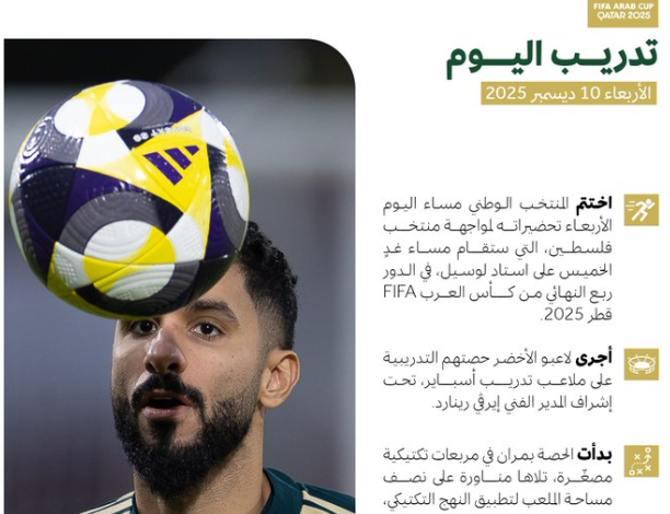 يواجه المنتخب السعودي نظيره الفلسطيني غدًا على إستاد لوسيل، في الدور ربع النهائي من بطولة كأس العرب FIFA قطر 2025.