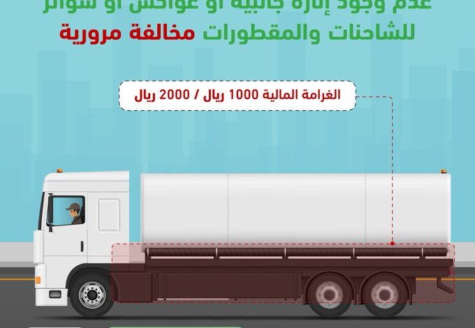 المرور: عدم وجود إنارة جانبية أو عواكس أو سواتر للشاحنات مخالفة مرورية