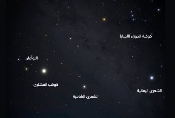 وأوضح رئيس الجمعية الفلكية بجدة المهندس ماجد أبو زاهرة, أن المشهد يتصدره نجم الشعرى اليمانية ألمع نجوم السماء ليلًا، الواقع في كوكبة الكلب الأكبر، ويتميّز بسطوعه العالي، إلى جانب الشعرى الشامية في كوكبة الكلب الأصغر، مشيرًا إلى أن النجمين يشكلان مع منكب الجوزاء ما يُعرف بـ”مثلث الشتاء”.