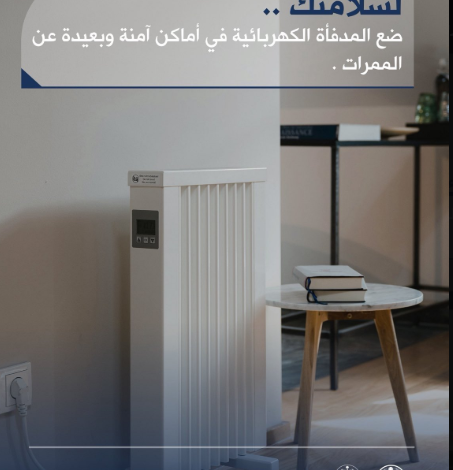 وأضافت المديرية، عبر حسابها بمنصة (إكس)، أنه «يجب وضع المدفأة الكهربائية في أماكن آمنة وبعيدة عن الممرات».