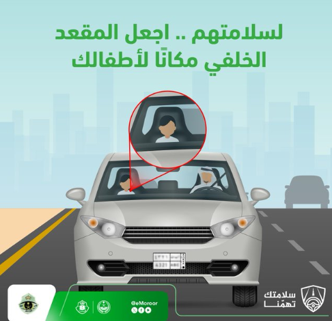 حثت الإدارة العامة للمرور، قائدي المركبات على مراعاة وضع الأطفال بالمكان الآمن داخلها.