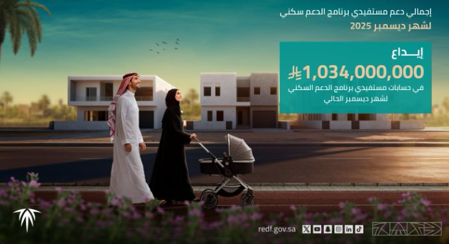 أعلن صندوق التنمية العقارية اليوم، إيداع مليار وأربعة وثلاثين مليون ريال في حسابات مستفيدي برنامج الدعم السكني من وزارة البلديات والإسكان، والصندوق العقاري، عن شهر ديسمبر 2025م.