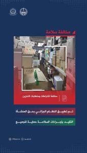 وتابعت، أنها ضبطت مخالفة بهذا الشأن وطبقت النظام الجزائي بحق المنشأة المخالفة، مشيرة إلى أن التقيد بإجراءات السلامة حماية للجميع.