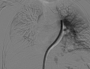 وبفضل سرعة الاستجابة وجاهزية فريق الأشعة التداخلية جرى التدخل العلاجي العاجل وفتح الشريان الرئوي وسحب الجلطة بالكامل بدقة عالية ، ما أدى إلى تحسّن فوري في العلامات الحيوية واستقرار الحالة دون تسجيل أي مضاعفات.