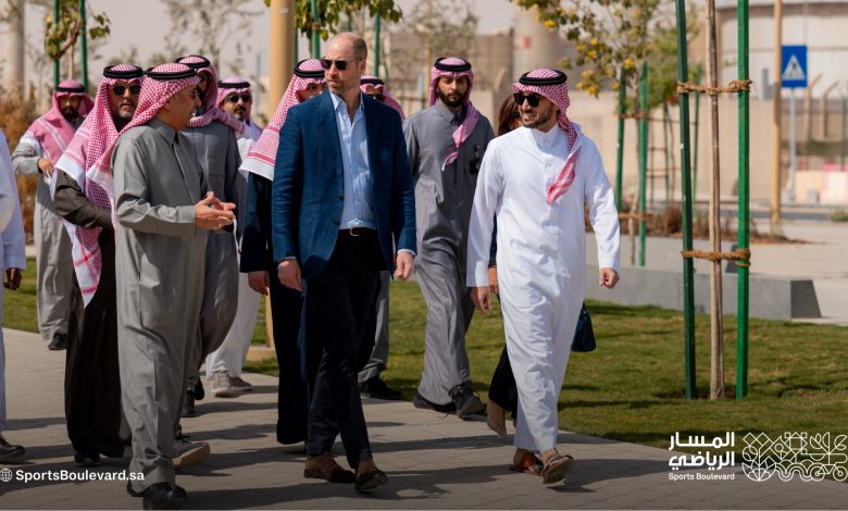 وزير الرياضة يستقبل ولي عهد بريطانيا ويصطحبه في جولة على مشروع المسار الرياضي