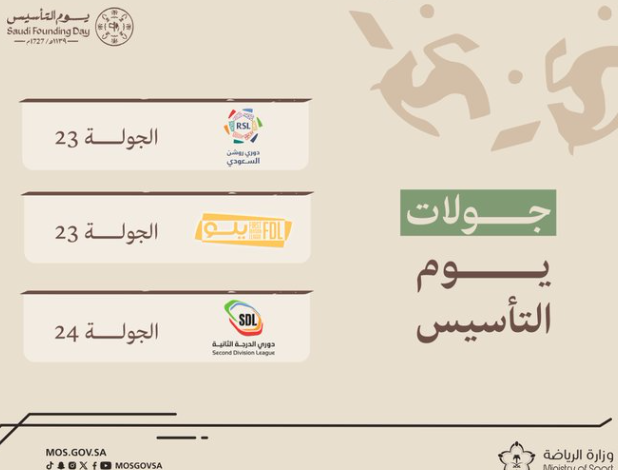 اعتمد وزير الرياضة رئيس اللجنة الأولمبية والبارالمبية السعودية الأمير عبدالعزيز بن تركي الفيصل، تسمية الجولة الـ23 في دوري روشن السعودي للمحترفين، والجولة الـ23 في دوري أندية الدرجة الأولى (دوري يلو)، والجولة الـ24 في دوري أندية الدرجة الثانية، باسم جولة #يوم_التأسيس.