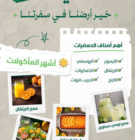 وأشارت الوزارة خلال حملتها، إلى أصناف الحمضيات المتنوعة مثل الليمون، والبرتقال، والترنج، واليوسفي، والجريب فروت، والكمكوات، بالإضافة إلى منتجاتها التحويلية مثل الحلويات والعصائر، لتعكس تنوّع الإنتاج الزراعي، ودعمه للاقتصاد الوطني، بالإضافة إلى قدرته على تلبية احتياجات الأسواق المحلية بجودة عالية.