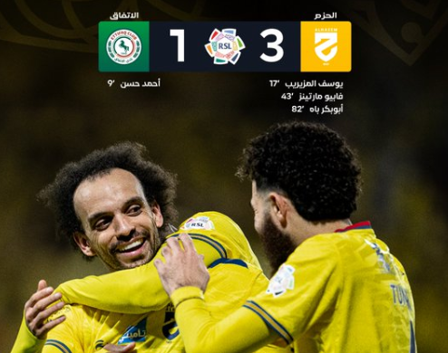 الحزم يقلب الطاولة على الاتفاق بثلاثية ويحقق فوزًا ثمينًا