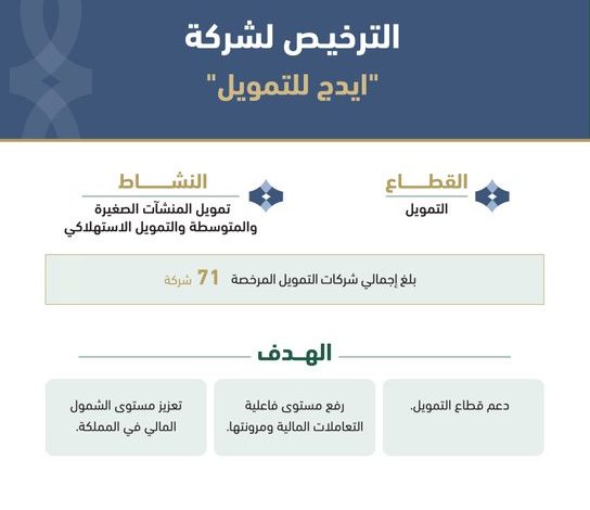البنك المركزي السعودي يرخص لشركتي ايدج للتمويل و “وكاد الحلول للوساطة الرقمية”