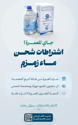 دعت وزارة الحج والعمرة ضيوف الرحمن القادمين لأداء مناسك العمرة إلى الالتزام بالاشتراطات التنظيمية الخاصة بشحن عبوات ماء زمزم عند المغادرة، وذلك لضمان إتمام إجراءات سفرهم بيسر وطمأنينة وتجنّب أي تأخير في المطارات.