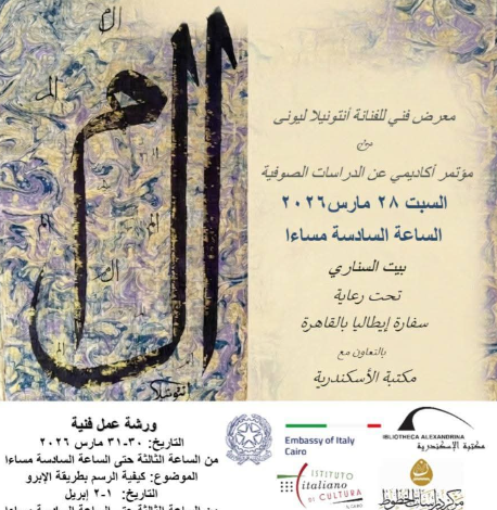 تستضيف مكتبة الإسكندرية من خلال بيت السناري التابع لقطاع التواصل الثقافي، معرضًا بعنوان «حروف من نور: الأبعاد الرمزية للخط العربي»، وذلك برعاية سفارة إيطاليا بالقاهرة، يوم السبت الموافق 28 مارس 2026، في تمام الساعة السادسة مساءً، بمقر بيت السناري الأثري بحي السيدة زينب، بالقاهرة.