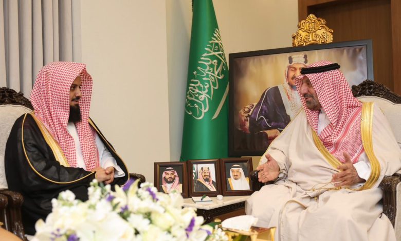 جاء ذلك خلال لقائه في مكتبه بالإمارة اليوم، رئيس المحكمة الجزائية بالمنطقة الشيخ محمد بن أحمد القرني، يرافقه عدد من قضاة المحكمة، الذين قدموا للسلام على سموه وتهنئته بعيد الفطر.
