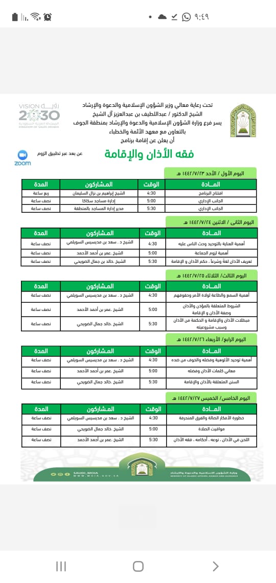 (فقه الأذان والإقامة) برنامج علمي “عن بُعد” بالجوف