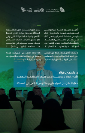 وثمّنت الأمين التنفيذي لاتفاقية الأمم المتحدة لمكافحة التصحر الدكتورة ياسمين فؤاد، الدور القيادي الذي تضطلع به المملكة، من خلال تبني العديد من المبادرات البيئية الدولية، مثل مبادرة الشرق الأوسط الأخضر، والمبادرة العالمية للأراضي، أو من خلال رئاستها لمؤتمر الأطراف، وما أسهمت به في رفع مستوى الطموح الدولي وتعزيز العمل الجماعي، مشيرة إلى أن استعادة الأراضي المتدهورة ليست مجرد قضية بيئية فحسب؛ بل إنجازٌ تنموي وإنساني ينعكس بشكلٍ مباشر على تعزيز الأمن الغذائي، ودعم الاقتصادات المحلية، وخلق فرص العمل، وتحسين جودة الحياة للمجتمعات المحلية، بالإضافة إلى إسهامه في مواجهة تحدياتٍ عالمية أشمل، مثل تغير المناخ، والاستقرار في المناطق الهشة، والحد من النزوح المرتبط بتدهور الأراضي.