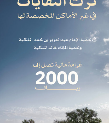 محمية الإمام عبدالعزيز الملكية: مخالفة ترك النفايات في غير الأماكن المخصصة تصل إلى 2٫000 ريال