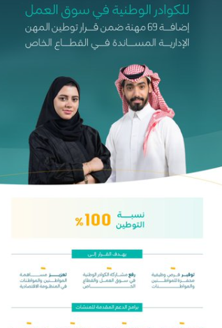 أعلنت وزارة الموارد البشرية والتنمية الاجتماعية عن تحديث قرار توطين المهن الإدارية المساندة في القطاع الخاص اعتبارًا من 5 أبريل 2026 ، ليشمل إضافة (69) مهنة ضمن نطاق المهن المشمولة بالتوطين بنسبة 100%، وفقًا للتعريفات والمسميات المهنية المعتمدة في التصنيف السعودي الموحد للمهن، حيث يأتي التحديث ضمن جهود الوزارة الهادفة إلى تعزيز مشاركة الكفاءات الوطنية في سوق العمل، وتوفير فرص وظيفية محفزة ومنتجة للمواطنين والمواطنات في مختلف مناطق المملكة.