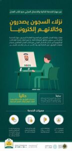 وتتيح الخدمة لنزلاء السجون إصدار الوكالات الإلكترونية من خلال الاتصال المرئي مع كُتّاب العدل المكلفين بمركز عمليات التوثيق، دون الحاجة لوجود كاتب عدل مُكلف بالسجن.