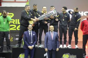 في مشهد رائع شهده النادي الأهلي الرياضي ، وبنقل مباشر من قناة ليبيا الرياضية و خلال تتويج الفريق حسب الترتيب من لعبة فرق وفردي بين منافسة قوية منتخبات ” مصر، تونس، المغرب، الجزائر، ليبيا “، والتى كانت من نصيب جمهورية مصر العربية ، هذا وحضر حفل التتويج العديد من الشخصيات الاعتبارية والرياضية والعديد من الضيوف الكرام والإعلاميين والصحفيين ابتدات مراسم الاحتفال بتكريم نائب العام فريق أول صدام بلقاسم حفتر بدرع الوفاء عرفانا وتقديرا لإبراز البطولة لتظهر بهذا المظهر اللائق من خلال التنظيم، والاستقبال والأداء، كما تم تتويج كافة الفرق.