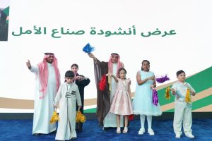 بعد ذلك، عُزف السلام الملكي بمشاركة عدد من أطفال التوحد ومرضى السرطان والغسيل الكلوي، في مشهد إنساني عكس ارتباطهم العميق بالوطن وقدرتهم على التعبير عن الانتماء رغم ظروفهم الصحية.