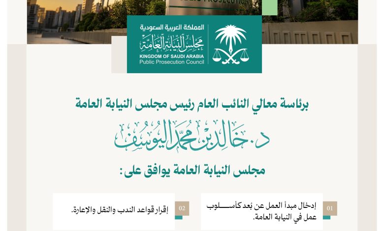 ووافق المجلس على إدخال مبدأ العمل عن بُعد كأسلوب عمل معتمد في النيابة العامة، بما يسهم في رفع كفاءة الأداء وتوفير بيئة عمل مرنة تدعم الإنتاجية.