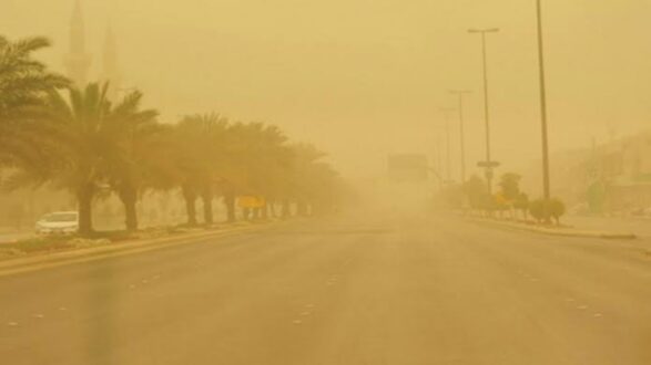 ومن المتوقع أن يستمر نشاط الرياح السطحية المثيرة للأتربة والغبار تحد من مدى الرؤية الأفقية على المنطقة الشرقية والأجزاء الجنوبية من منطقة الرياض، في حين يستمر تأثير العوالق الترابية على منطقة (نجران، المرتفعات الجنوبية الغربية، ومنطقتي مكة المكرمة والمدينة المنورة)، كما تكون السماء غائمة جزئيا على المرتفعات الجنوبية الغربية والغربية تتخللها سحب رعدية ممطرة.