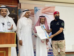 وفي نهاية الدورة ، تم تكريم شركة معاهد طيبة العالية للتدريب على رعايتهم البرنامج ممثلة بمديرة العلاقات العامة للشركة.