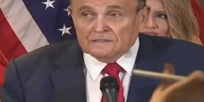 شهد المؤتمر الصحفي الذى عقده محامي الرئيس الأمريكي المنتهية ولايته، دونالد ترامب، رودي جولياني، ظهور خط أسود على وجهه.