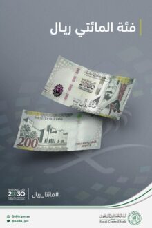 أعلن البنك المركزي السعودي عزمه طرح فئة المائتي ريال من العملة الورقية السعودية؛ بمناسبة مرور خمسة أعوام على إطلاق “رؤية المملكة 2030″، في عهد خادم الحرمين الشريفين الملك سلمان بن عبد العزيز آل سعود يحفظه الله، وذلك استناداً إلى المادة (الرابعة) من نظام النقد السعودي الصادر بالمرسوم الملكي رقم 6 بتاريخ 01/07/1379هـ.