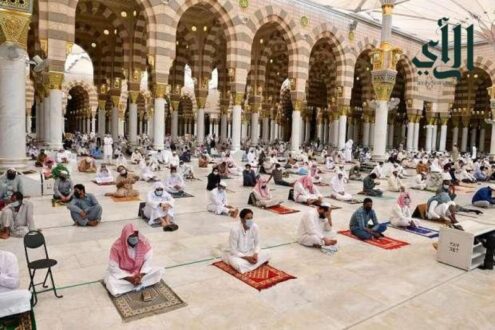 وتمّ وضع نقاط فرز للتأكّد من أهلية المصلين وحصولهم على المتطلبات اللازمة عبر تطبيق “توكلنا”.