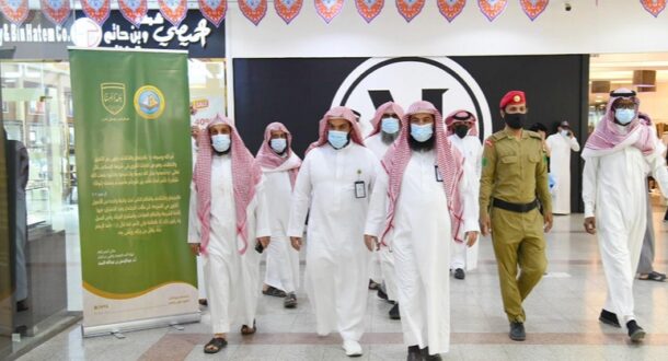 ودعا منسوبي الهيئة إلى الالتزام بالاحترازات الصحية والتدابير الوقائية من لبس الكمامة والتباعد الجسدي وحث المتسوقين على ذلك.